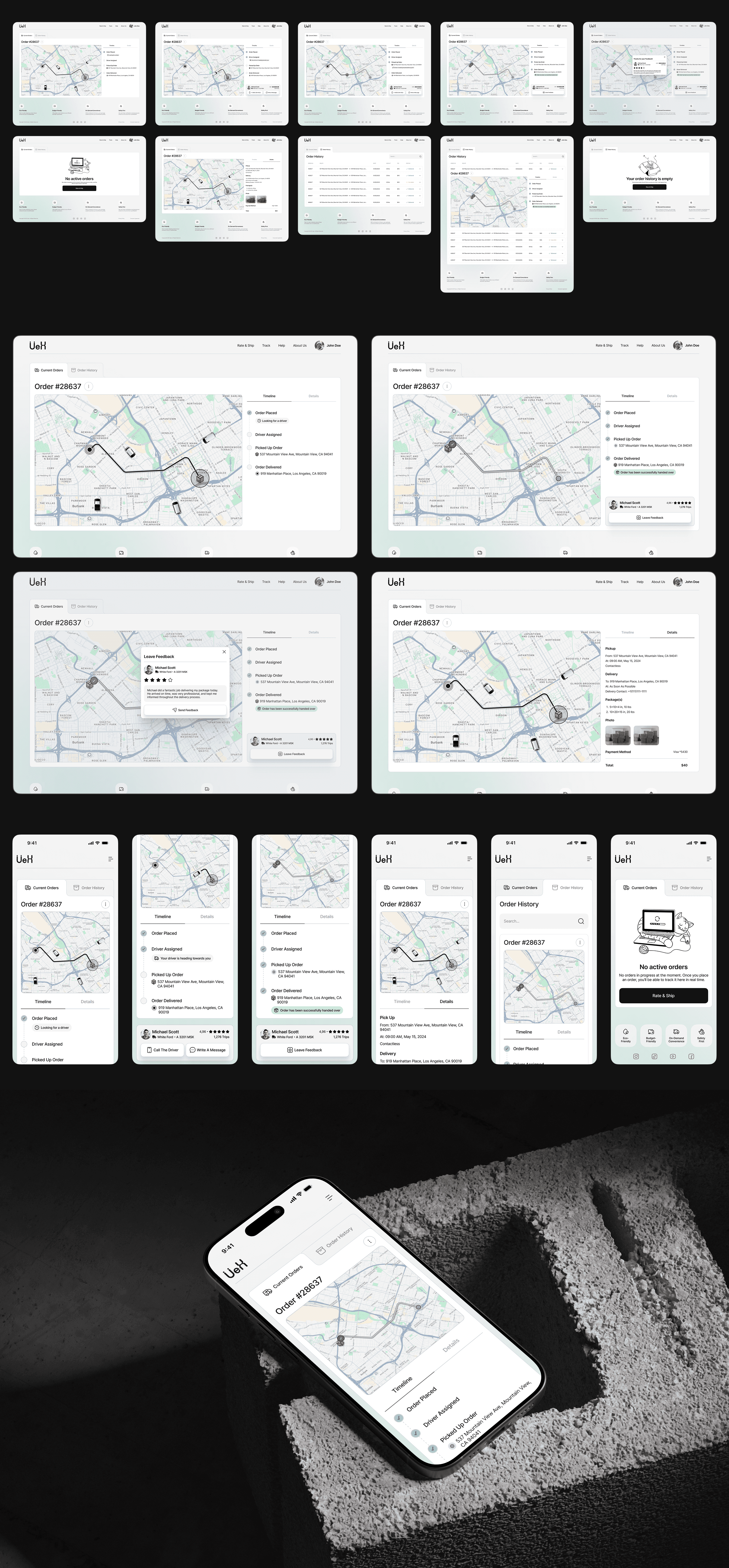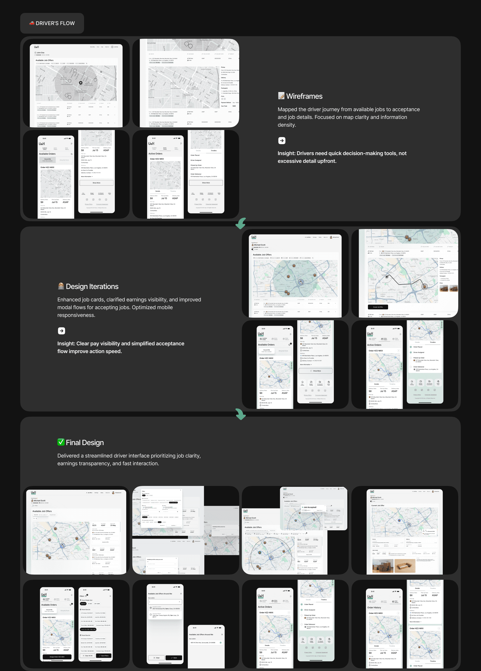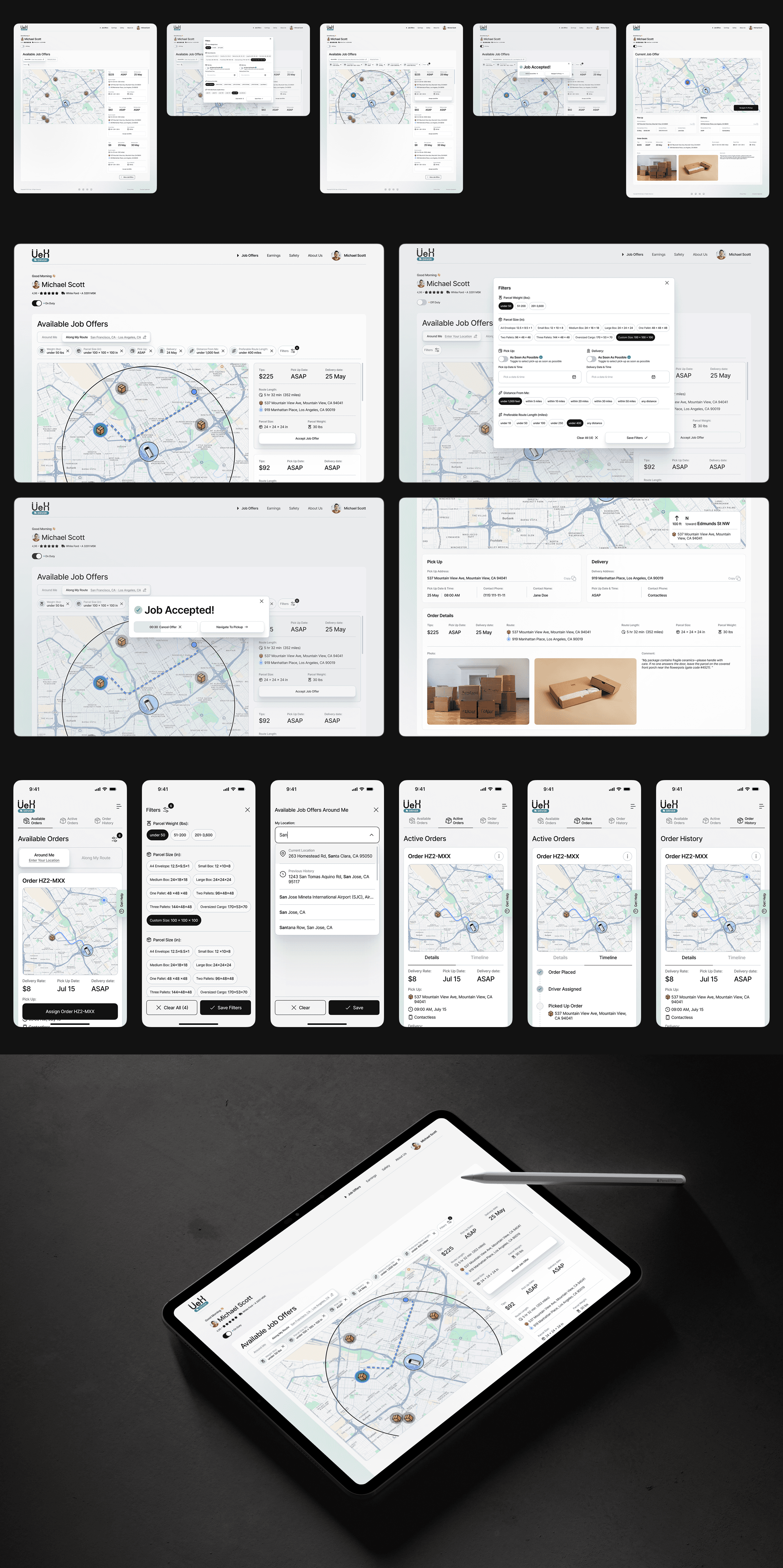 I was responsible for the end-to-end UI/UX design of the platform. This included designing user flows, wireframes, and high-fidelity mockups, as well as building a scalable design system. My work emphasized turning complex logistics into intuitive interactions, ensuring users could quickly find rates, book shipments, and track deliveries with confidence.