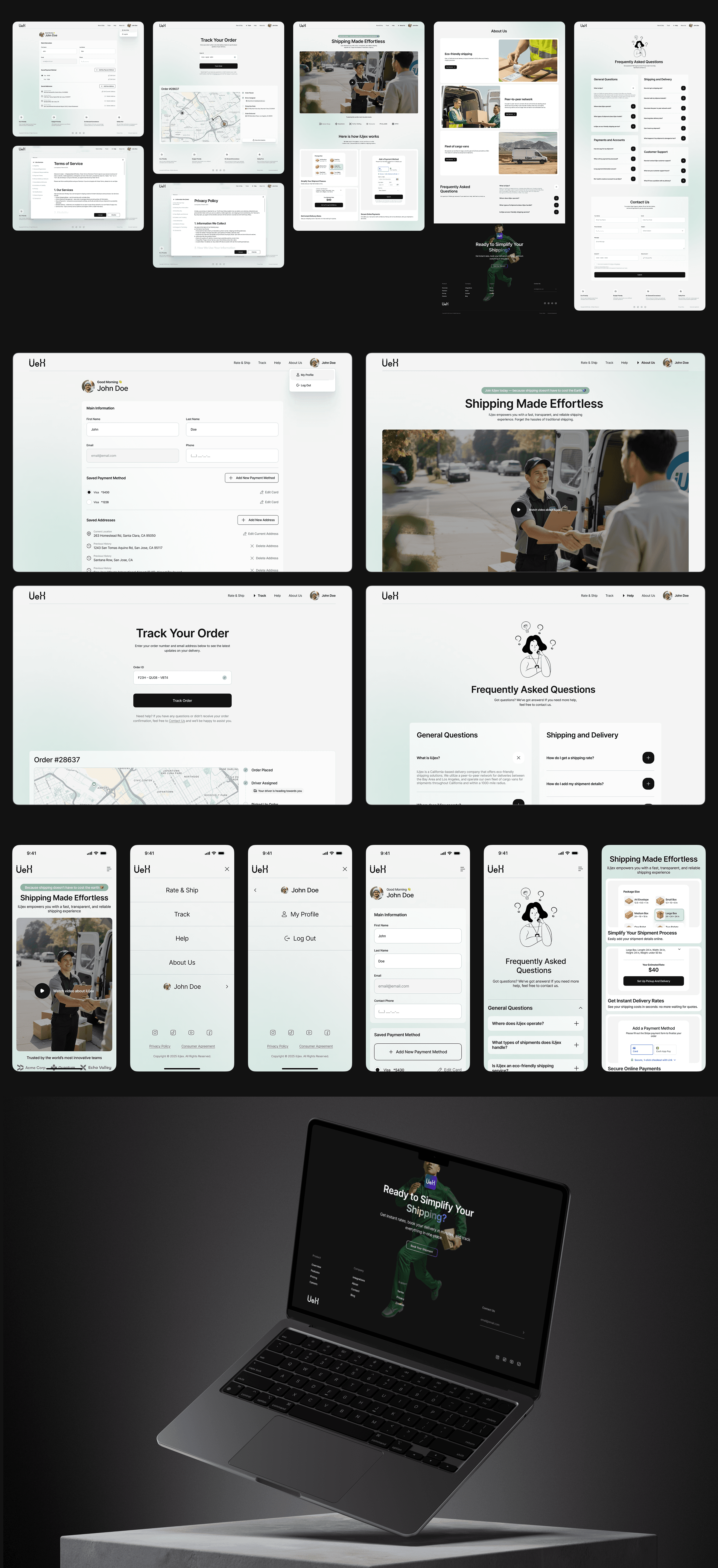 iUjex is a B2B and B2C shipping platform designed to make deliveries effortless for small businesses and individual sellers. It provides instant rate calculation, shipment creation, and real-time package tracking: all within a clean and accessible interface. • Role: UX/UI Designer (end-to-end design) • Duration: 6 months • Team: Founder, Software Engineer (Backend), Software Engineer (Frontend) • Tools: Figma, FigJam, Miro